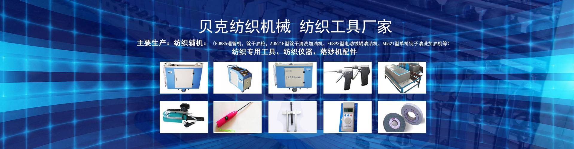 安徽貝克紡織機(jī)械設(shè)備有限公司座落于皖東天長市東郊S312省道109km仁和段,毗鄰江蘇南京、揚(yáng)州、水陸交通十分便利,環(huán)境優(yōu)美。 公司是主要產(chǎn)品有:紡織專用工具(前紡、后紡保全、保養(yǎng)、平車、全套專用工具和通用工具),皮輥房系列(皮輥磨床、壓圓機(jī)、套皮輥機(jī)、皮輥切割機(jī)有機(jī)械式和液壓式兩種供選擇),梳棉輔助機(jī)械(刺輥包磨機(jī)、清刷蓋板機(jī)、金屬鋸條倒料機(jī)蓋板踵趾面銑削機(jī)、包針布慢速傳動裝置 ……